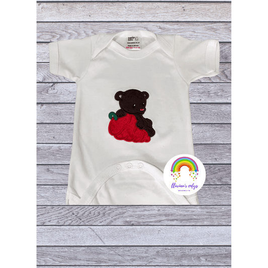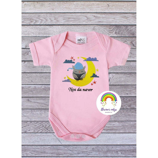BRO-013 Anrheg i fabi newydd - Tylluan wedi ei frodio ar Babygrow gyda'r geiriau "Nos da nawr".
